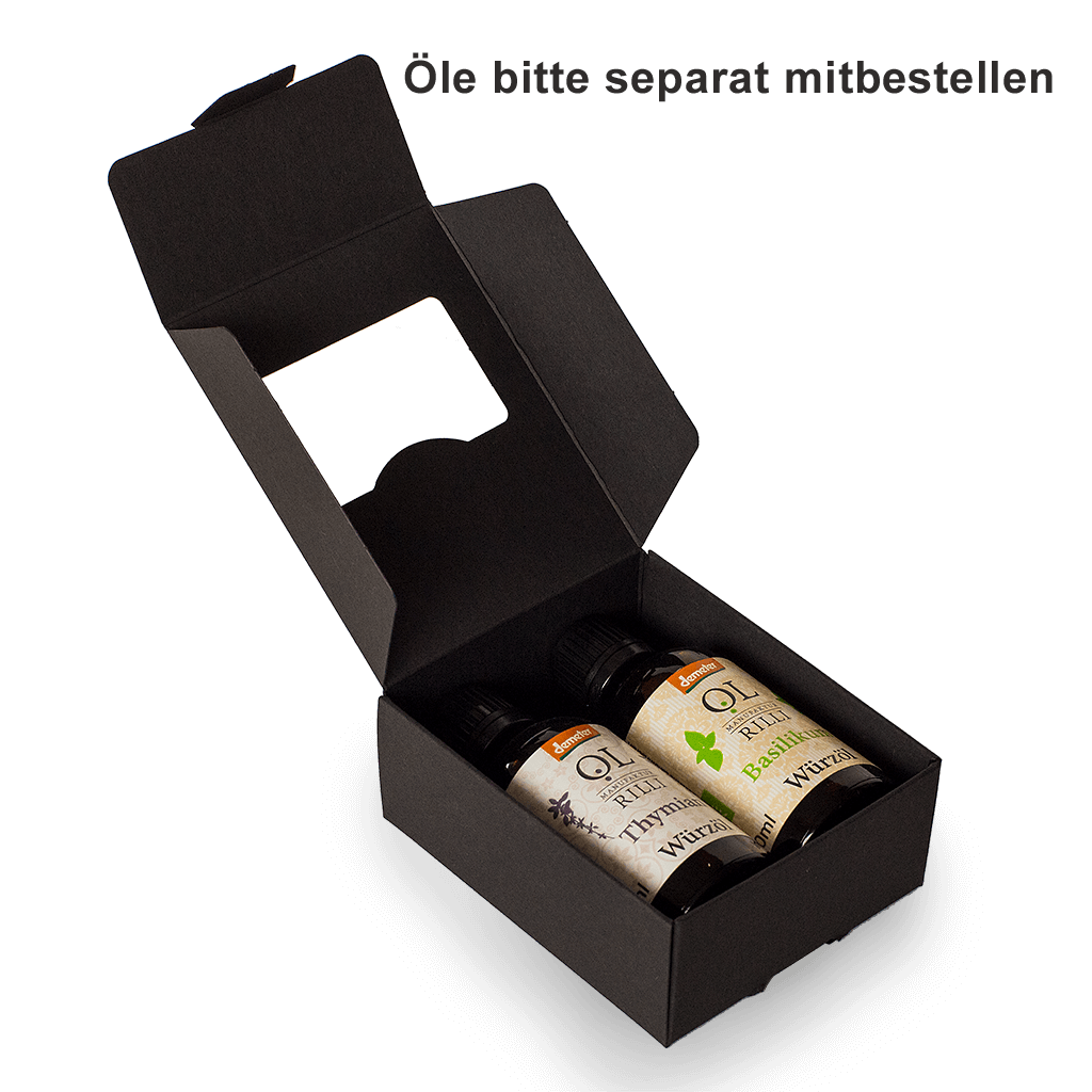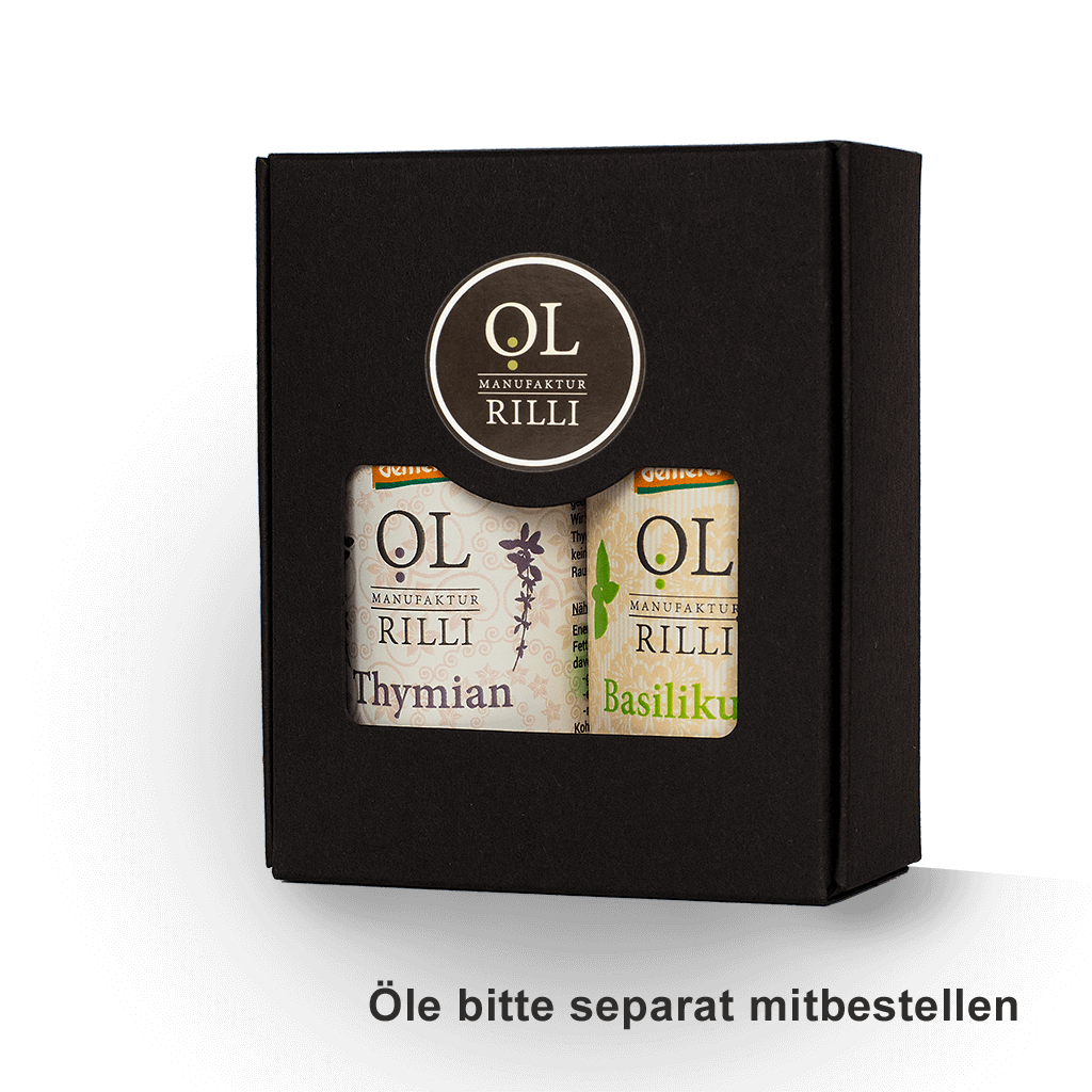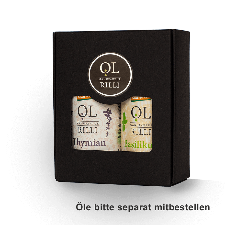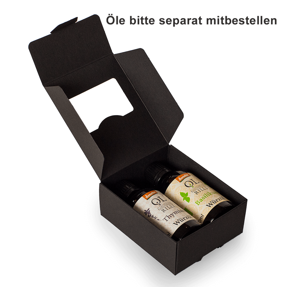 Zu dem Preis von 2,00 € für die Geschenkbox kommen noch die Preise für die jeweils ausgesuchten Öle dazu