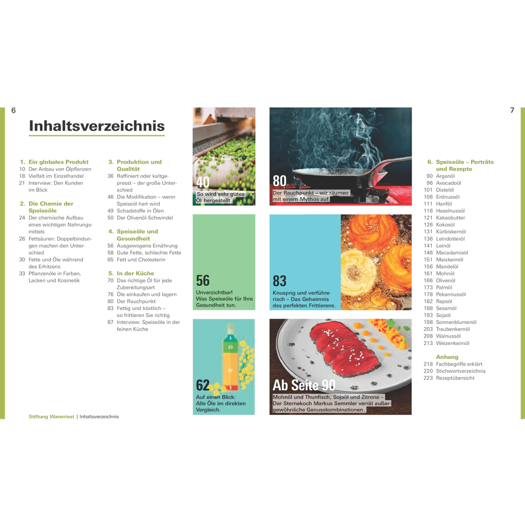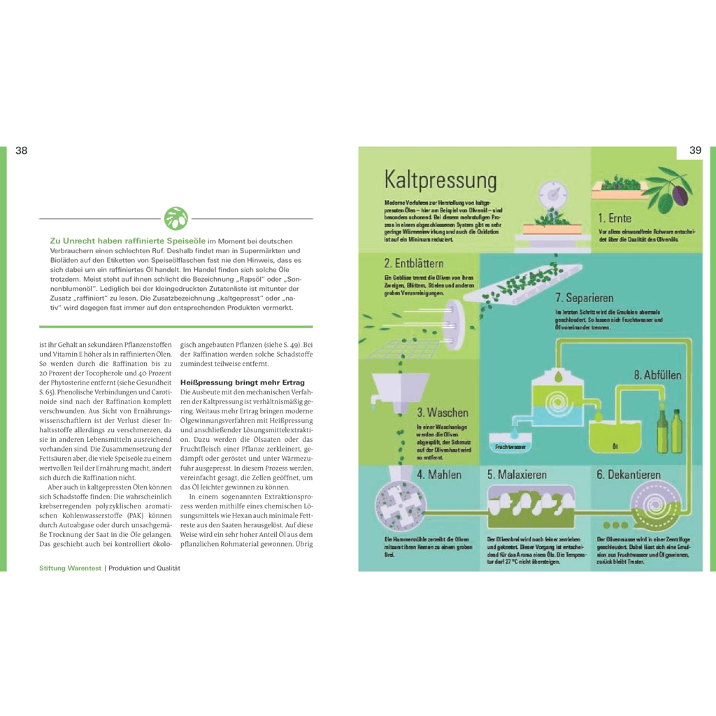 Woran man hochwertige Öle erkennt, wie verschiedene Öle hergestellt werden und vor allem, wo sie in der Küche zum Einsatz kommen, erfahren Sie in dieser umfassenden Warenkunde. Hier trifft das gebündelte Know-how der Stiftung Warentest auf jahrelange Erfahrungen von Deutschlands führenden Öl-Experten. Dazu hat Sternekoch Markus Semmler jeder Ölsorte ein raffiniert-erlesenes Rezept zur Seite gestellt.