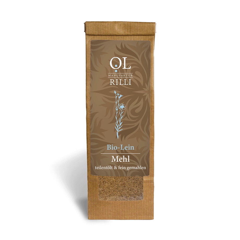 Unser Leinsamenmehl wird bei der Kaltpressung von Leinsamen gewonnen. Nach der Pressung enthält es noch 13% an Leinöl und wird vor dem Abpacken lediglich fein gemahlen. Mit einem Anteil von 9% an Omega-3-Fettsäuren ist es eines der gesundheitlich wertvollsten Mehle in unserem Sortiment. Beim Backen sollten sie etwas mehr Flüssigkeit verwenden, da Leinmehl sehr gut quillt. Beachten Sie, dass das Fehlen von Gluten, dem Klebereiweiß, Auswirkung auf das Backverhalten des Teiges hat und Sie daher nur einen Teil des Getreidemehls ersetzen sollten.