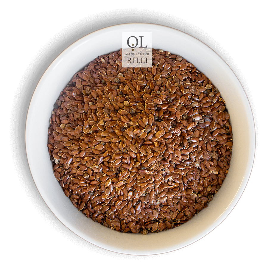100% Bio-Leinsamen (teilentölt), kann Spuren von Nüssen oder Sesamsamen enthalten.