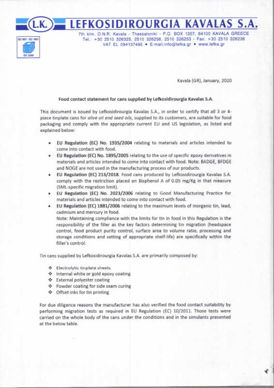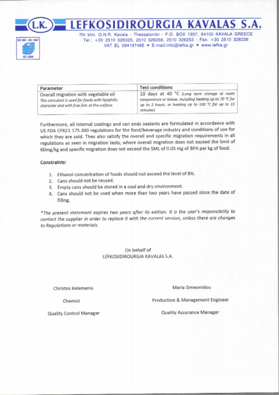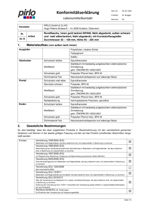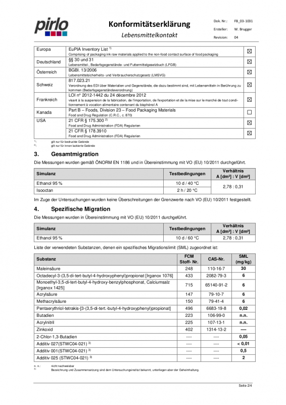 Konformitätserklärung Weißblech-Öldosen