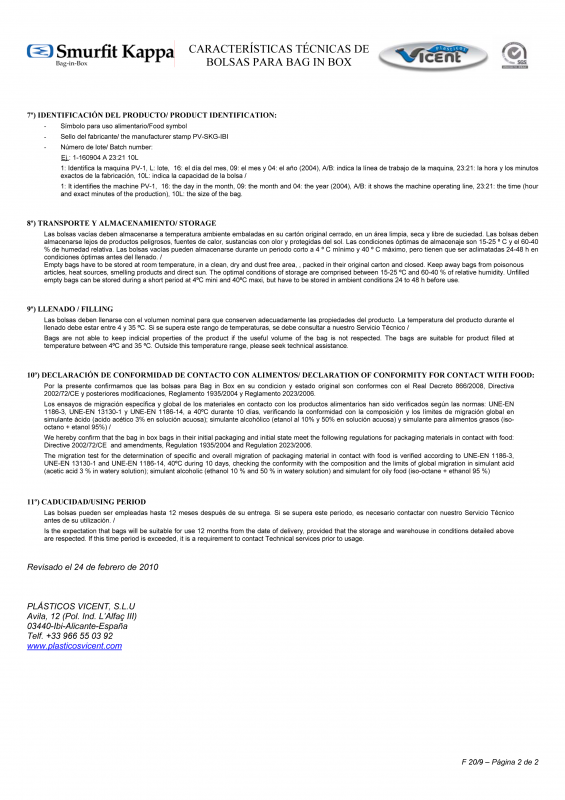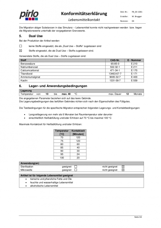 Unbedenklichkeitserklärung Bag in Box Beutel 2
