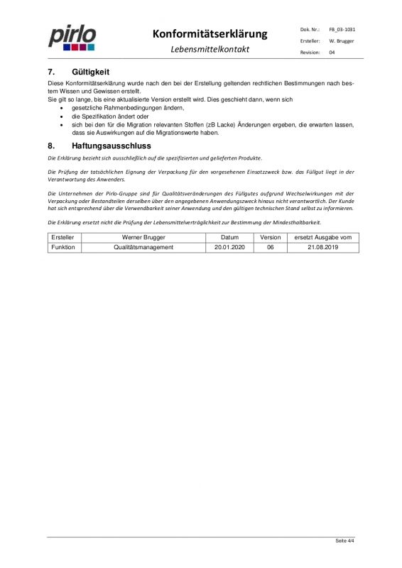 Unbedenklichkeitserklärung Bag in Box Beutel 1